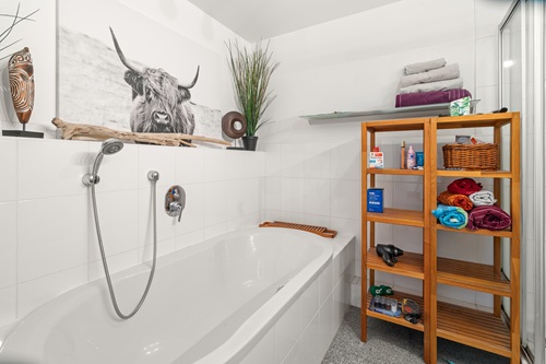 - Elegantes Bad mit Badewanne und Dusche sowie separatem WC